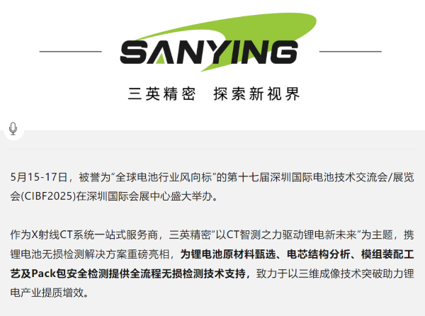 以CT智檢之力 驅(qū)動鋰電新未來 | 三英精密閃耀CIBF2025